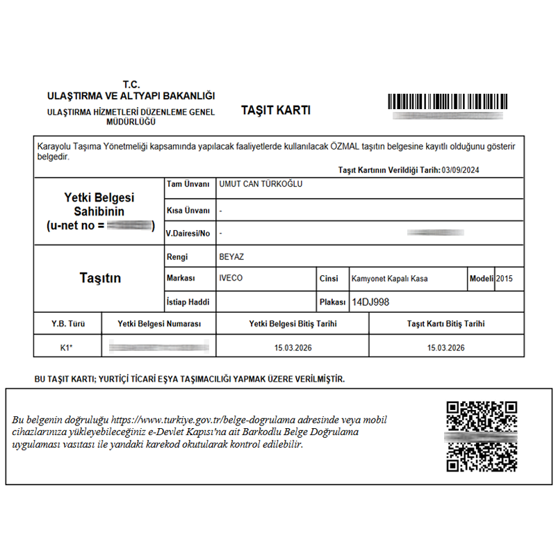 Oto Kurtarma ve Çekici Hizmet Belgesi